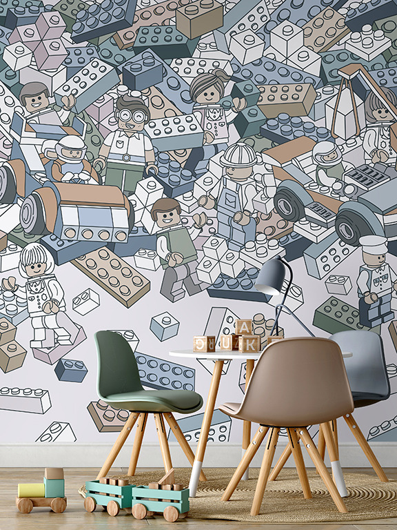 This playful wallpaper design featuring a collection of Lego pieces is a perfect match for your child’s room, although, we can see it turn heads in an office environment too. Pair it with contemporary furniture and wooden accents, and you’ll be sure to create a space that your child (or employees) will love to spend time in.